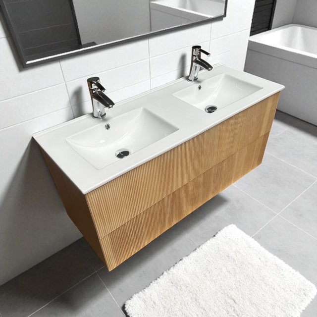 Maak het badmeubel “Lecce-R-120” compleet met een spiegel, kranen en afvoerpluggen.