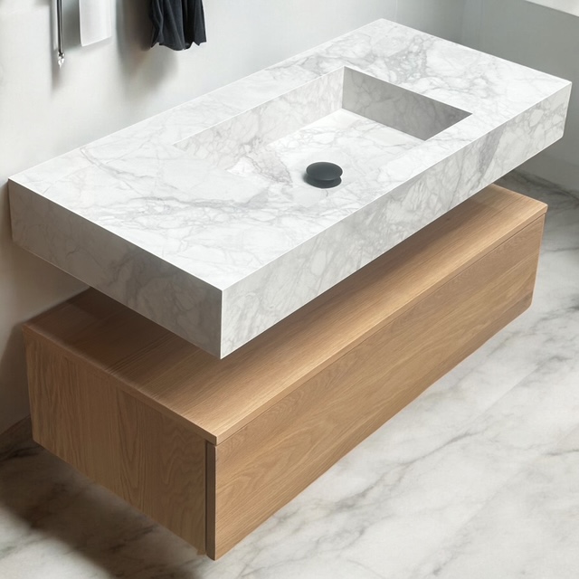 De badkamermeubelen zijn prominent aanwezig. Hierbij is het belangrijk om van te voren de ruimte op te meten en uit te tekenen waar u alles wilt gaan plaatsen. Aan de hand van deze metingen/plattegrond kunt u meubelen uit gaan zoeken die de juiste afmetingen hebben en zo perfect in de badkamer passen.