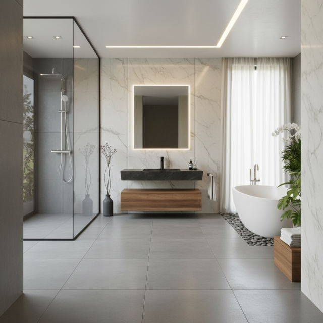 Er wordt veel aandacht en zorg besteed aan de inrichting van de badkamer.
