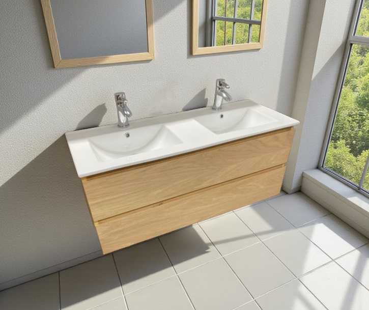 Maak het badmeubel “Boston-120” compleet met een badkameropbergkast, spiegel, kranen en afvoerpluggen.