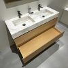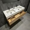 Maak het badmeubel “Boston-120 SSF” compleet met een badkameropbergkast, spiegel, kranen en afvoerpluggen.