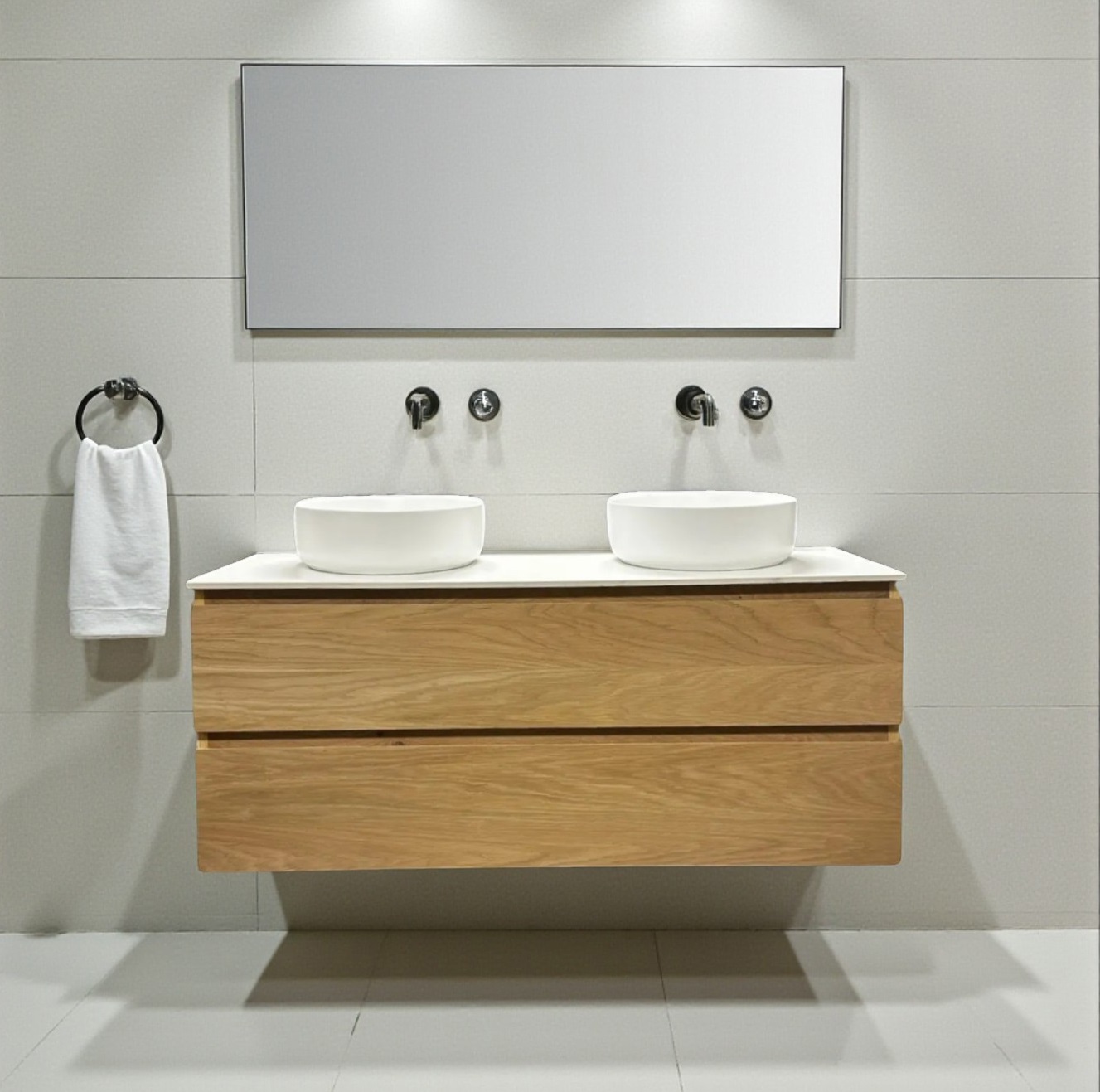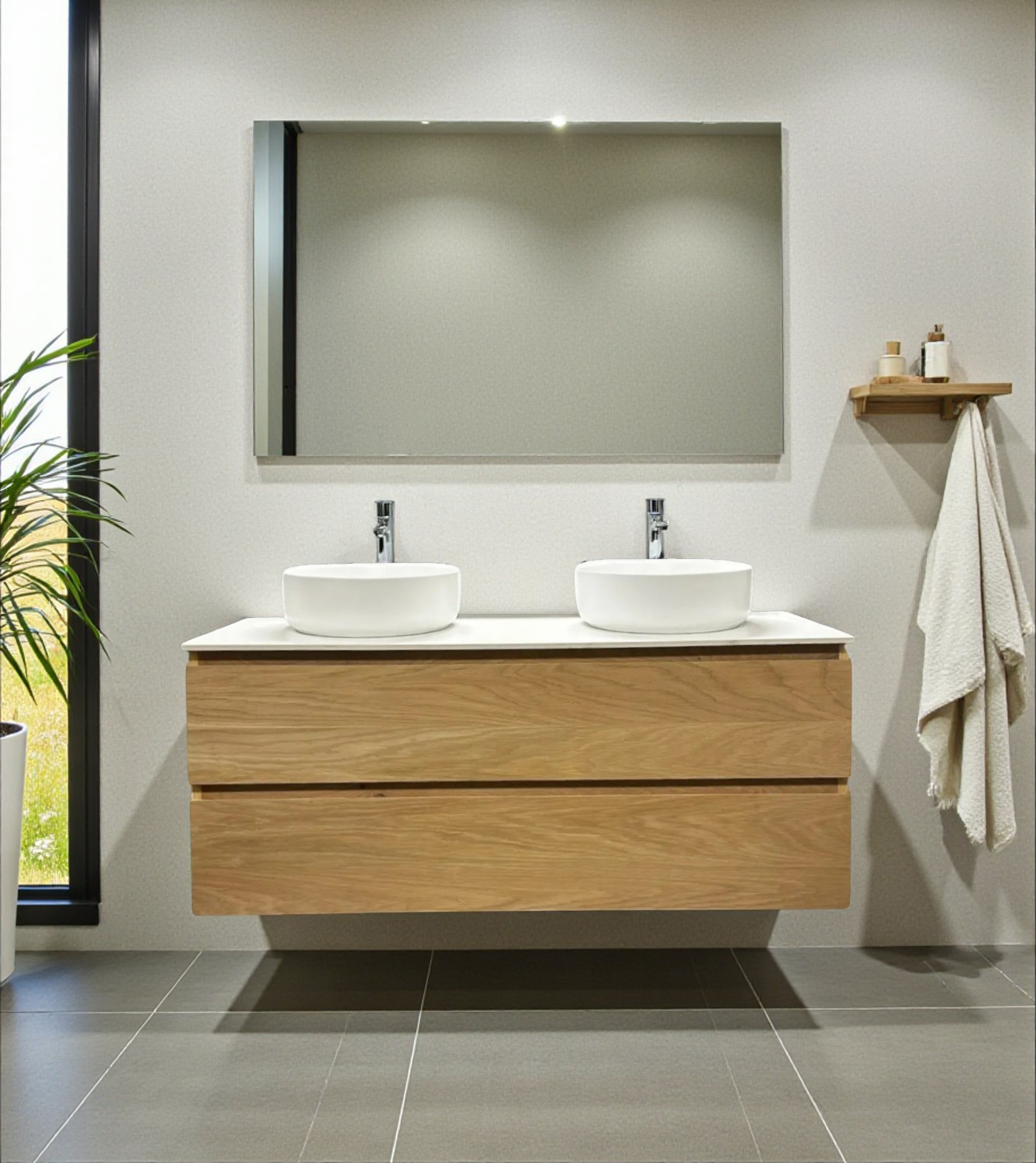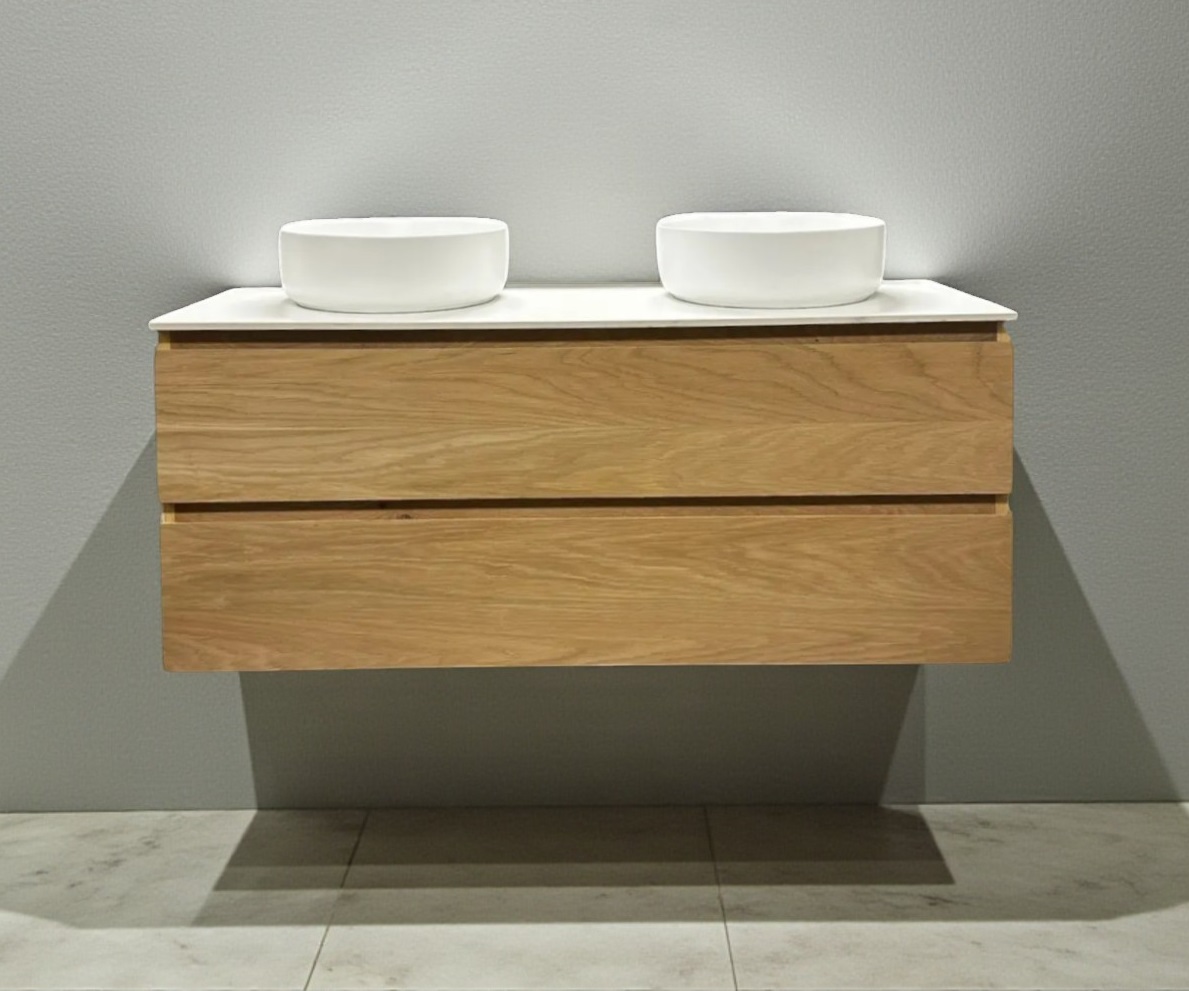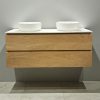 Maak het badmeubel “Boston-120 TBW” compleet met één of twee waskommen, Spiegel en Kolomkast.