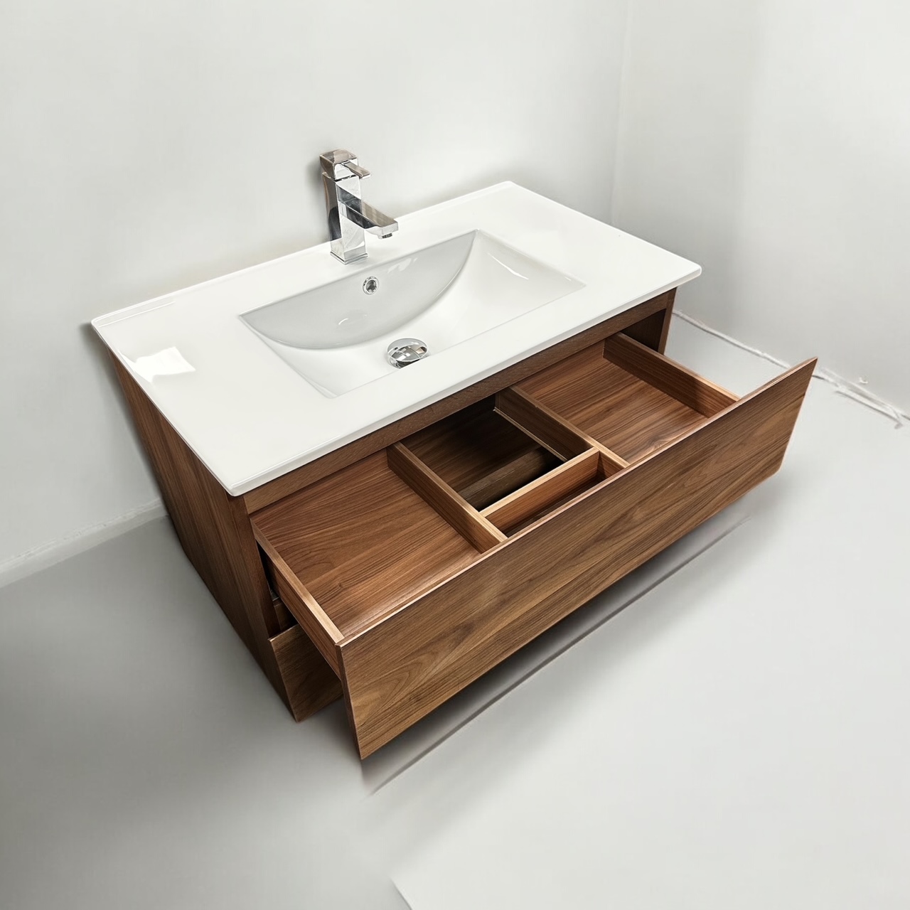Maak het badmeubel “Boston-W80” compleet met een badkameropbergkast, spiegel, kraan en afvoerplug.