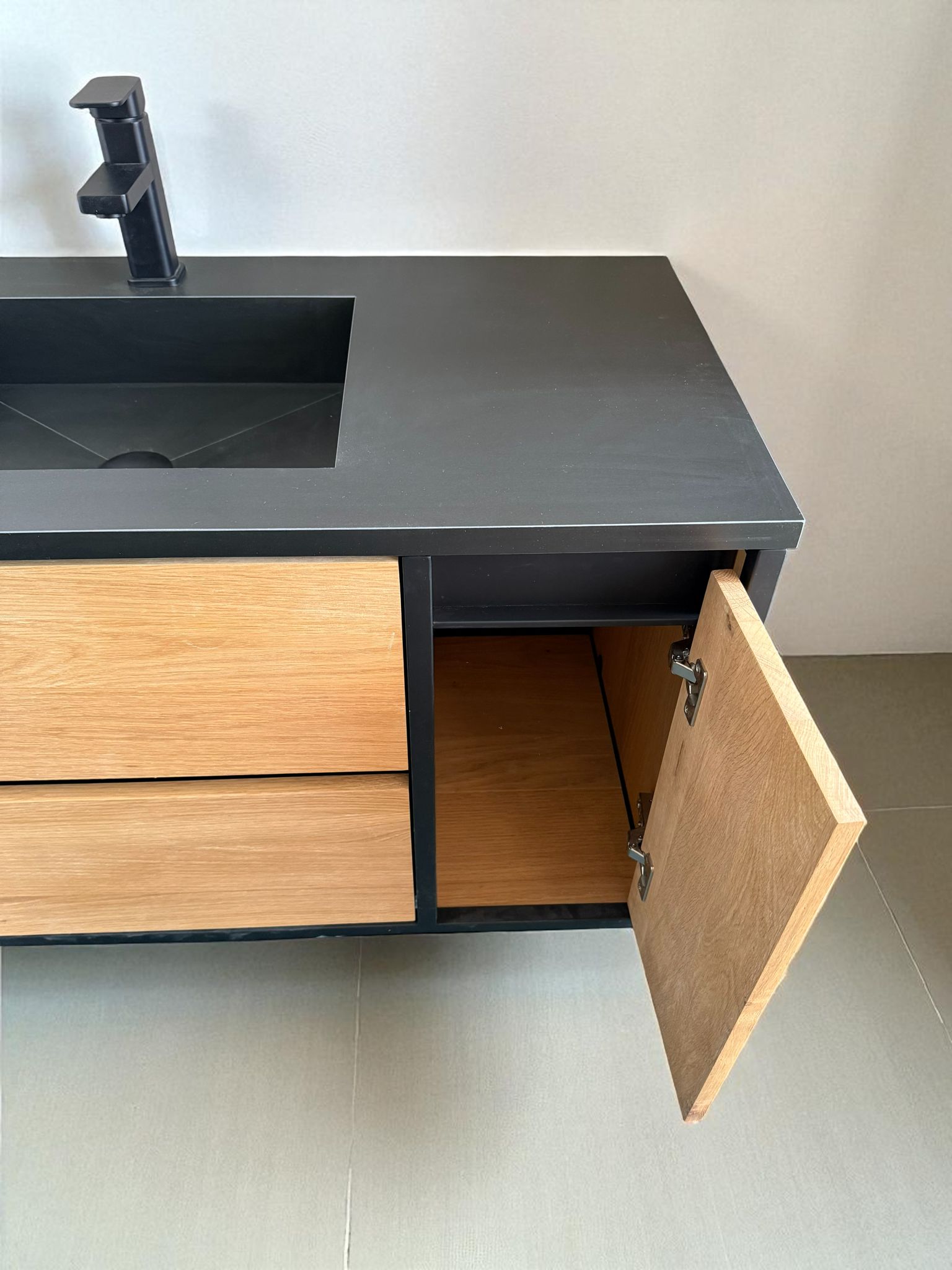 De badkamermeubelen zijn prominent aanwezig. Hierbij is het belangrijk om van te voren de ruimte op te meten en uit te tekenen waar u alles wilt gaan plaatsen. Aan de hand van deze metingen/plattegrond kunt u meubelen uit gaan zoeken die de juiste afmetingen hebben en zo perfect in de badkamer passen.