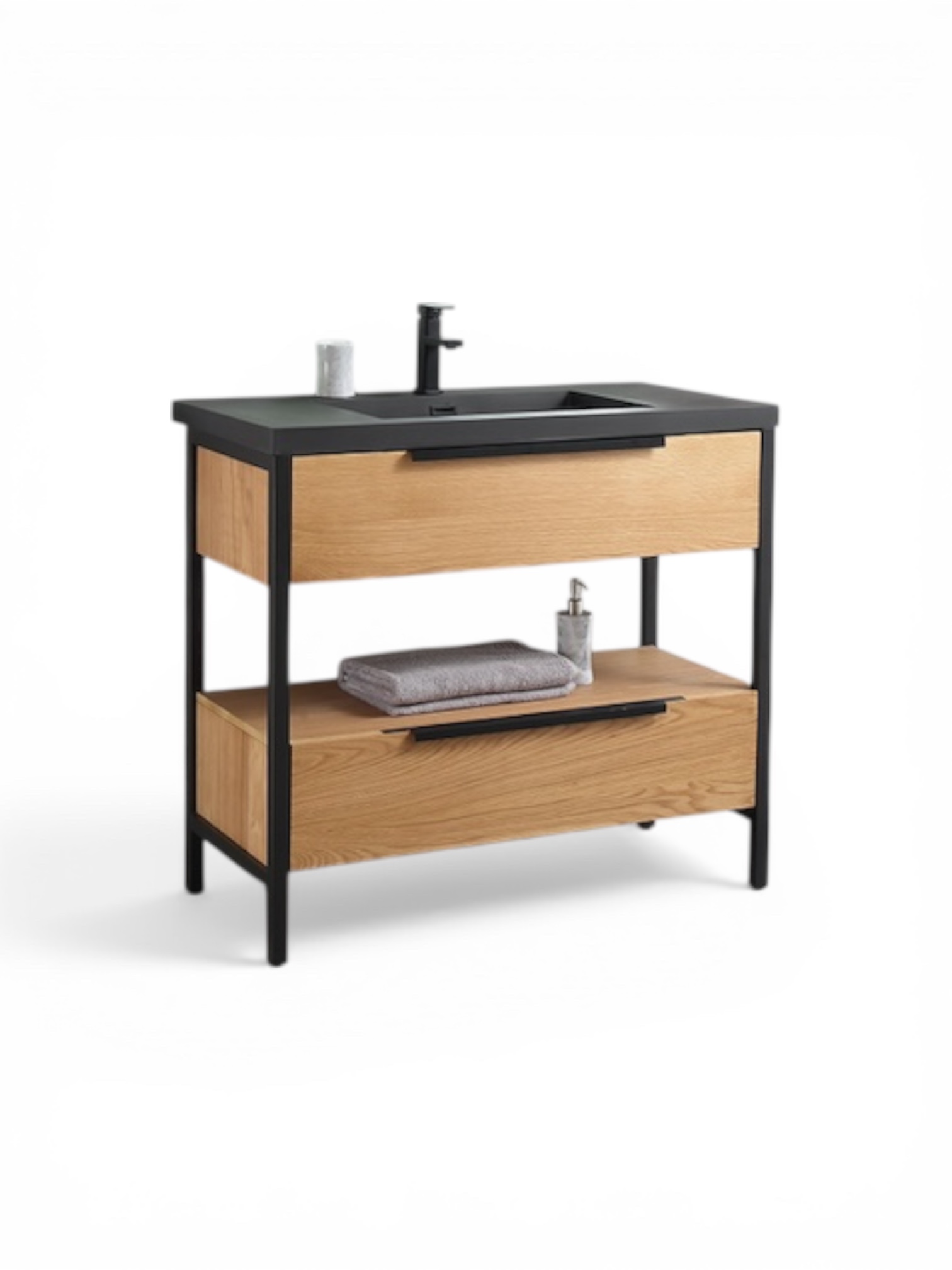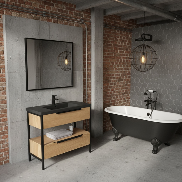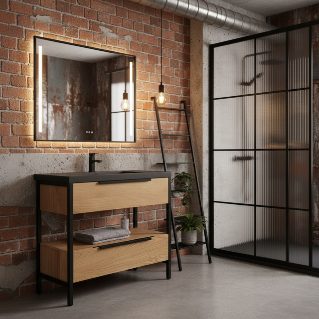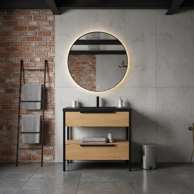 Maak het badmeubel “IDAHO-100 ASB” compleet met een kraan, spiegel en kolomkast.