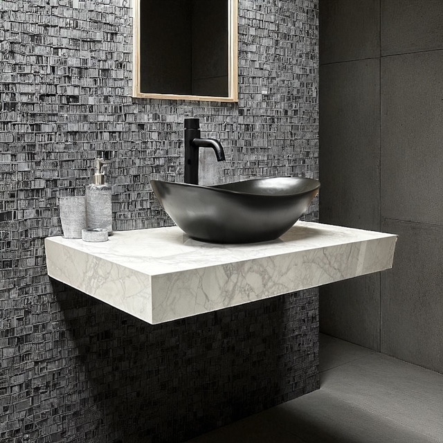 Maak het badmeubel “Marble-Top 90” compleet met kraan, spiegel en kolomkast.