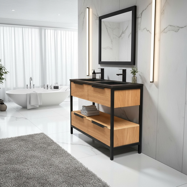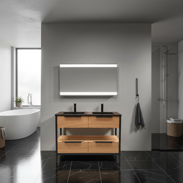 De badkamermeubelen zijn prominent aanwezig. Hierbij is het belangrijk om van te voren de ruimte op te meten en uit te tekenen waar u alles wilt gaan plaatsen. Aan de hand van deze metingen/plattegrond kunt u meubelen uit gaan zoeken die de juiste afmetingen hebben en zo perfect in de badkamer passen.